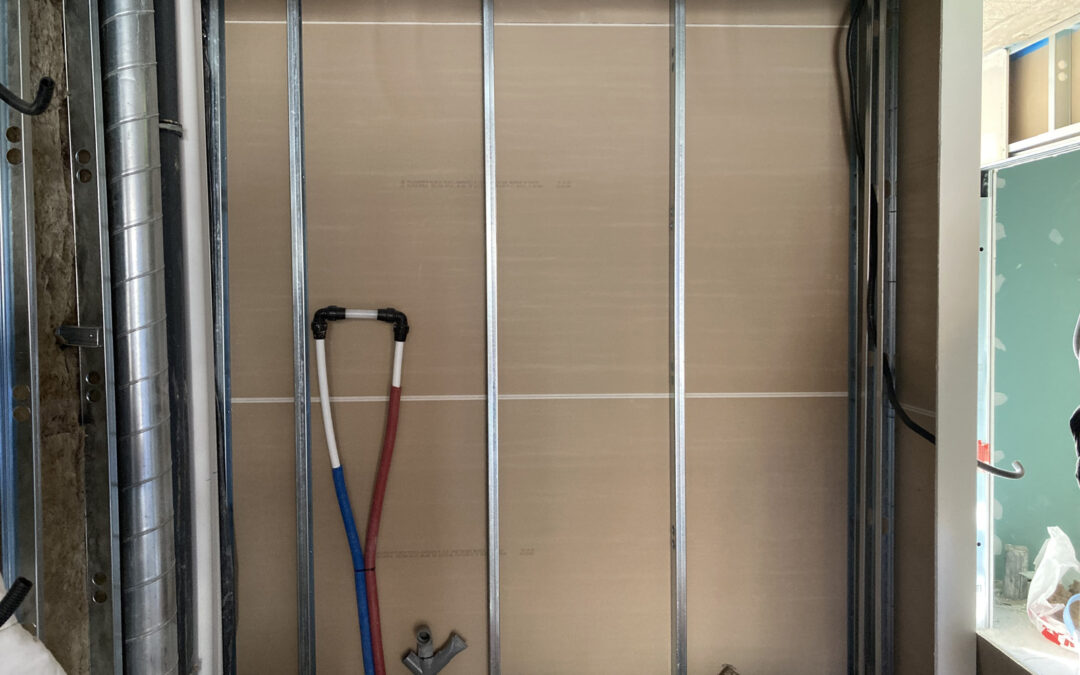 Por su parte, en Residencial FL9, tras finalizar la ejecución de muros de ladrillo en viviendas y fachada principal, monocapa en las fachadas medianeras, y aplicación de impermeabilizante en terrazas y cubierta, se está avanzando en el levantamiento de la tabiquería de cartón yeso así como en la en la ejecución de instalaciones.