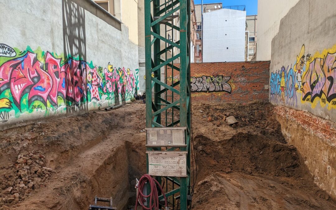 Se comenzó con las actuaciones de movimiento de tierras, para posteriormente ejecutar la cimentación del edificio. Además, se ha instalado la grúa en la parcela que facilita el desarrollo del resto de trabajos de la obra.